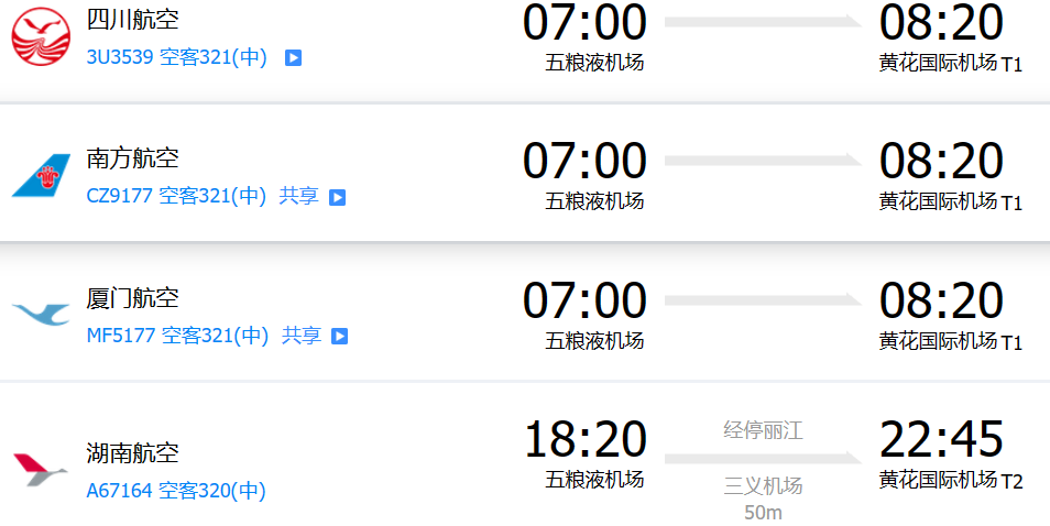 宜賓沒有直飛張家界荷花機(jī)場的航班,有從宜賓五糧液機(jī)場直飛長沙黃花機(jī)場的航班,具體參考如下: