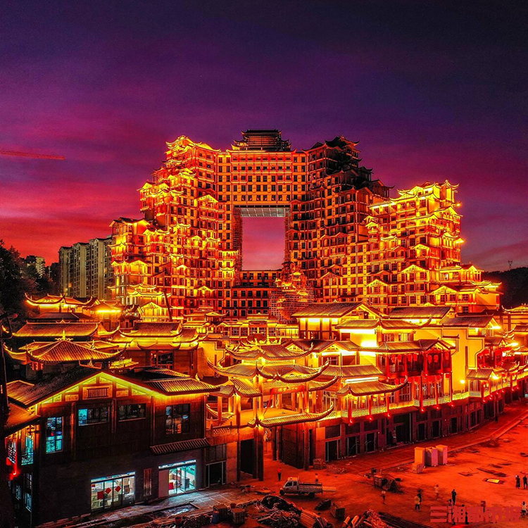 它將獨特的土家族建筑奇觀與現(xiàn)代光影科技(如全息投影、互動燈光秀)完美結合,打造出極具沉浸感的夜間文化體驗場景,并通過引入豐富的地方非遺展示、特色美食集市與沉浸式演藝活動,成功激活區(qū)域夜游經濟,為游客提供了傳統(tǒng)與現(xiàn)代交織的全新文旅樣本,引領了沉浸式文化夜游的新風潮。