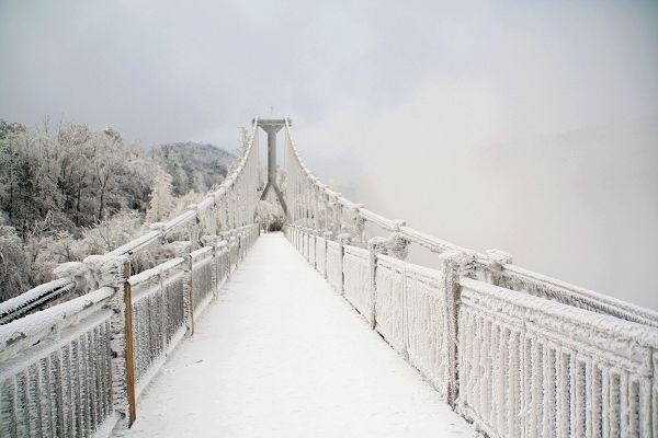 決定去天門山,一個很重要的原因就是想坐一下這個世界第一的索道——長7000多米,高1000多米,從市內(nèi)直接就到了天門山頂,既刺激又輕松。一大早到了索道站,天門洞景區(qū)由于下雪封路沒法游覽,256的票價減少到225,連最著名的景點(diǎn)都去不了,看來真是來坐長途索道了。