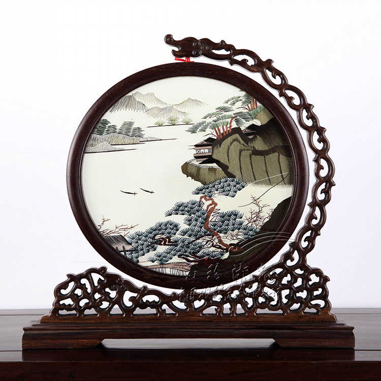 湘繡作為中國四大名繡之一,以湖南長沙為中心,是在湖南民間刺繡工藝的基礎上,吸取了蘇繡和粵繡的精華而發(fā)展起來的刺繡工藝品,從而形成了自己獨特的風格,強調寫實,質樸而優(yōu)美,形象生動。特點是絲細,后用皂莢仁溶液蒸煮,再裹起來揩拭,防止絨絲起毛,其光細勝眼于發(fā)絲,湘繡在配色上善于運用深淺灰及黑白色,加上適當?shù)拿靼祵Ρ龋鰪娏速|感和立體感,結構上虛實結合,善于利用空白,突出主題。