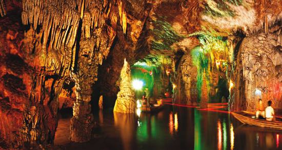 九天洞九天洞總面積250多萬平方米,折合4萬多畝。這樣一個大溶洞,比堪稱世界第一洞的利川溶洞還大3倍。據(jù)《環(huán)球天然奇觀》一書介紹,南斯拉夫的波斯托伊納大巖洞與美國的巴哈馬大藍洞,都稱為"世界上最大的洞",還有古巴的貝拉雅馬爾大巖洞與我國貴州、湖北神農(nóng)架一些溶洞,也都被稱為"世界或中國最大的溶洞"??墒沁@些溶洞,同九天洞比較,都會感到遜色不少。1988年,中國科學(xué)地質(zhì)研究所巖溶與地下水研究室主任張壽越教授兩次來九天洞考察,他認為該洞是亞洲第一大洞,于是他給九天洞題詞:"滴石鑄玄女,暗河鏤九天"。1988年9月下旬,來自美國、英國與比利時的15位洞穴專家對九天洞作深入研究,連續(xù)7天7夜住在洞內(nèi)全面考察。通過考察,他們一致認為九天洞是世界奇跡,不僅具有很高的旅游價值,同時還有很高的科研價值。
