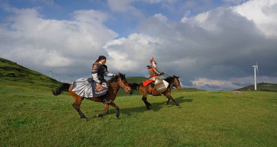 仰天湖大草原景區(qū)由仰天湖與大草原兩個(gè)板塊組成,草原腹地的仰天湖是第四紀(jì)冰川期饋贈(zèng)的一個(gè)死火山口,四季不斷流的泉眼滋養(yǎng)著整片草原。草原山脊上,矗立著蜿蜒百里、高聳入云的動(dòng)力風(fēng)車,白色風(fēng)車與綠草相映成趣,構(gòu)成了獨(dú)特的草原勝景。