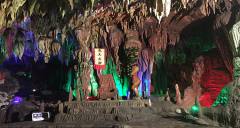 波月洞是以地下溶洞景觀為主體,地面景點(diǎn)相陪襯的綜合性公園,集游山、觀洞景、望瀑布、巖溶研究于一體的風(fēng)景名勝區(qū)。整個洞府以迷宮大廳為中心前部洞廳寬廣宏偉,氣勢磅礴;后部洞廳線條密集,晶瑩剔透。洞中千柱挺立,萬裙倒掛,山川、田野、瀑布、石柱、石幔、石鐘乳比比皆是,一步一景、步步是景,景景神奇。