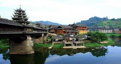 皇都侗寨由頭寨、盤寨、尾寨、新寨共同組成。前三個寨子連為一體,新寨則是處于一個半島上,由風(fēng)雨橋(普修橋)和公路相通,與另三個寨子隔河相望。
