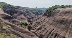 飛天山丹霞地貌區(qū)南西距郴州市25公里,面積48平方公里。屬紅巖丘陵地貌,地貌被大自然鬼斧神工雕刻成似人、似獸、似物、似禽,栩栩如生。主要丹霞地貌類型為寨(堡),它們坐落有序,寨身陡峭,紅崖赤壁,寨頂綠樹當(dāng)華蓋。不少寨頂溶蝕成渾圓形洼坑。