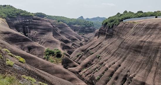 沿江兩巖“丹霞翠遙斷,巖石架空來(lái)”。一路順江飄流,只見丹峰林立,紅巖綠水,怪石幽洞,古木吐翠,竹海茫茫。一年四季綠葉、三季花香,繪成罕見的“四面青山列翠屏”、“草木花光盡是春”的奇妙丹霞地貌景觀。