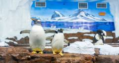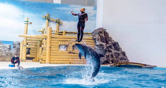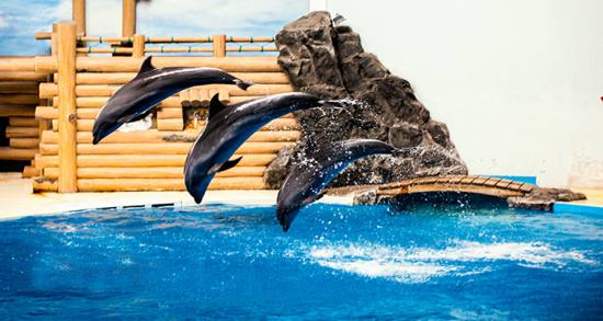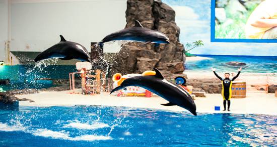極地館:主要為極地動(dòng)物區(qū),分為白鯨池、海獅池、海豚池、海豹池、企鵝池、水獺池等水生生物展示休息表演池,以及北極狼舍、北極狐舍等陸生生物展示休息籠舍。館內(nèi)建有一個(gè)高大寬敞明亮,音響等設(shè)備設(shè)施先進(jìn)配備LED大型顯示屏的表演劇場(chǎng),可供1800多游客同時(shí)近距離觀賞海豚、海獅等精彩表演。